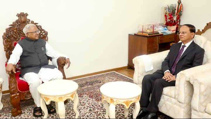 राज्यपाल श्री मंगुभाई पटेल से प्रधानमंत्री के प्रमुख सचिव डॉ. पी.के. मिश्रा की सौजन्य भेंट