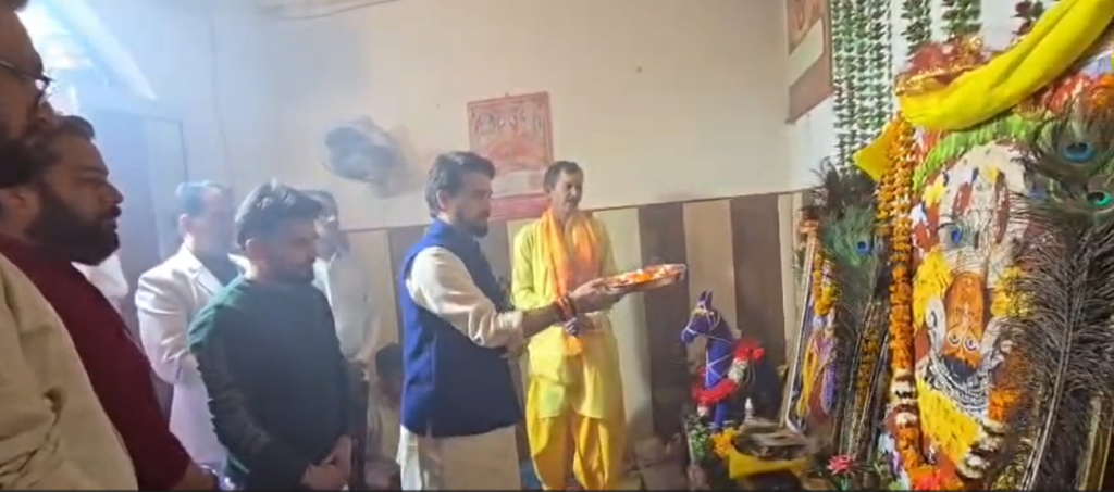 इससे स्पष्ट है कि युवा चेहरे धार्मिक कार्यों में बढ़-चढ़कर भाग ले रहे हैं। इसके बाद अनुराग ठाकुर बिलासपुर के देओली पंचायत के चमलोग स्थित राधा कृष्ण मन्दिर में भी पूजा अर्चना की ।