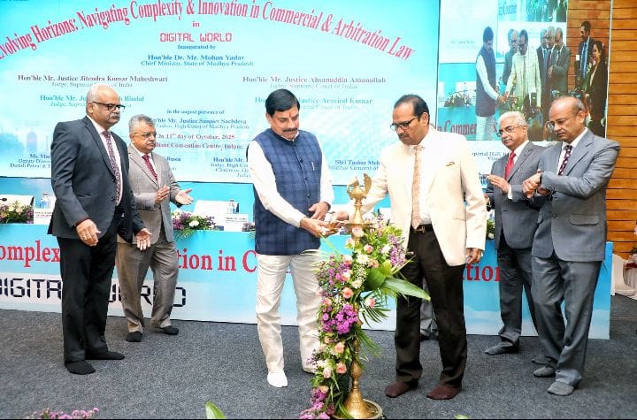 मुख्यमंत्री डॉ. यादव आज 11 अक्टूबर 2025 को इंदौर में आयोजित “इवोल्विंग होराइजन्स: नेविगेटिंग कॉम्प्लेक्सिटी एंड इनोवेशन इन कमर्शियल एंड आर्बिट्रेशन लॉ इन द डिजिटल वर्ल्ड” विषय पर आयोजित विधि विशेषज्ञों की अंतर्राष्ट्रीय संगोष्ठी (इंटरनेशनल कॉन्फ्रेंस) के शुभारंभ सत्र को संबोधित कर रहे थे।