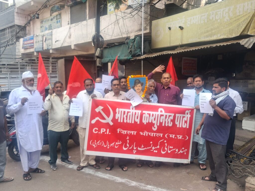 भाकपा नेताओं कॉमरेड शैलेन्द्र शैली,कॉमरेड शिवशंकर मौर्य,कॉमरेड बालकृष्ण नामदेव ने साम्राज्यवाद और पूंजीवाद के खिलाफ भगत सिंह के क्रान्तिकारी विचारों का उल्लेख करते हुए श्रद्धांजलि अर्पित की ।