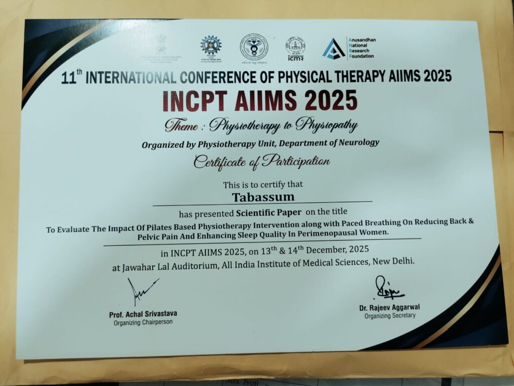 उनके रिसर्च पेपर से महिला स्वास्थ्य को लेकर महत्वपूर्ण जानकारी सामने आ रही है। उनके शोध कार्य की एम्स नई दिल्ली में 11वीं इंटरनेशनल कॉन्फ्रेंस ऑन फिजिकल थेरेपी 2025 के दौरान प्रशंसा हुई और उन्हें कान्फ्रेंस में प्रमाण पत्र दिया गया।