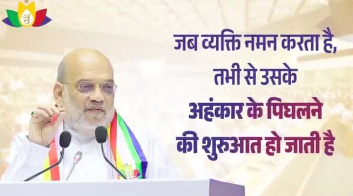 केन्द्रीय गृह मंत्री ने कहा कि जब व्यक्ति नमन करता है, तभी से उसके अहंकार के पिघलने की शुरुआत हो जाती है। उन्होंने कहा कि ‘अरिहंत’ वह होता है जो ‘अरि’ अर्थात् आंतरिक शत्रुओं का ‘हंत’ करता है।