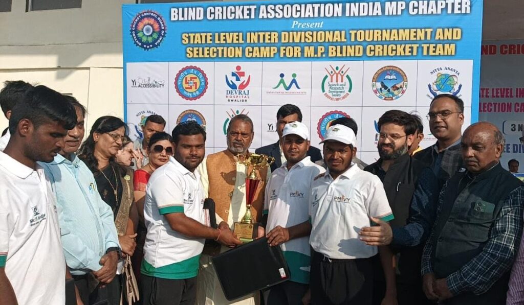 ब्लाइंड क्रिकेट एसोसिएशन इंडिया एम पी चैप्टर द्वारा विगत 4 नवम्बर से अटल बिहारी वाजपेयी दिव्यांग खेल परिसर ग्वालियर में चल रहे का समारोह पूर्वक समापन हो गया। राज्य स्तरीय इंटर डिविजनल टूर्नामेंट के दौरान खिलाड़ियों का चयन भी किया गया।