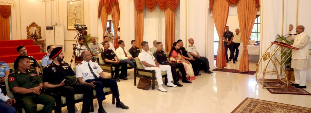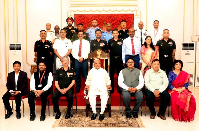मध्य प्रदेश के राज्यपाल मंगुभाई पटेल रविवार को लोकभवन में आयोजित राष्ट्रीय रक्षा महाविद्यालय, नई दिल्ली में अध्ययनरत वरिष्ठ सैन्य एवं सिविल अधिकारियों को संबोधित कर रहे थे। दल 15 से 21 मार्च तक मध्यप्रदेश के अध्ययन भ्रमण आया है। कार्यक्रम में राज्यपाल के प्रमुख सचिव डॉ. नवनीत मोहन कोठारी भी मौजूद थे।